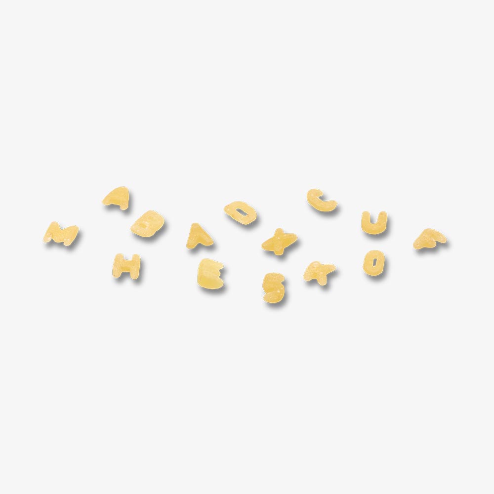 This pasta was undoubtedly invented to stimulate the imagination of children who commonly eat this pasta in baby food and vegetable soups and give them their first introduction to the idea of reading.