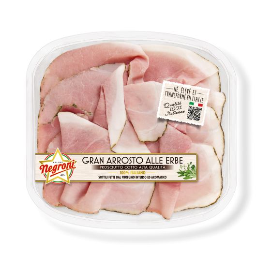 This roasted ham is a refined blend of flavours. Gently steamed and browned in the owen, it yields savoury slices. Wavy slices.
