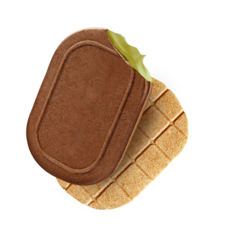 Soft pistachio cream enclosed in a fragrant two-flavor wafer